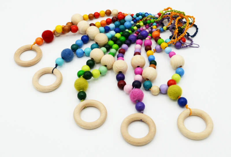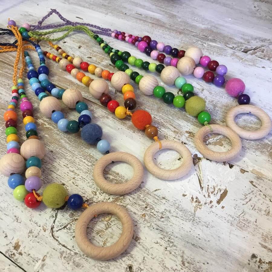 Attraverso l’utilizzo delle collane per l’allattamento il poppante esplora forme e colori nuovi evitando di graffiare, pizzicare o tirare i capelli della mamma.