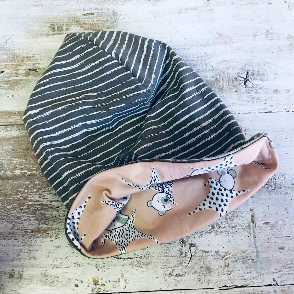 Cuffia double face in doppio Jersey 5% elastan, 95% cotone.