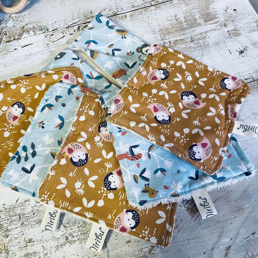 L’articolo è composto da una pochette in cotone contenente 5 Quadrotti assortiti, fronte cotone, retro in morbida spugna.